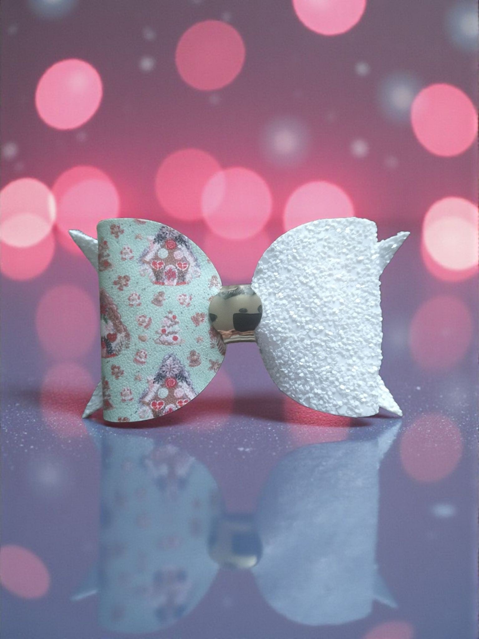 Add a touch of festive charm and playful elegance to any outfit with our Ginger Snap House Leatherette Hair Bow! Crafted from soft, high-quality leatherette, this bow combines durability with a luxurious feel, making it perfect for everyday wear or special holiday occasions. Its warm, rich gingerbread hue evokes cosy vibes and irresistible cuteness that will turn heads wherever you go.